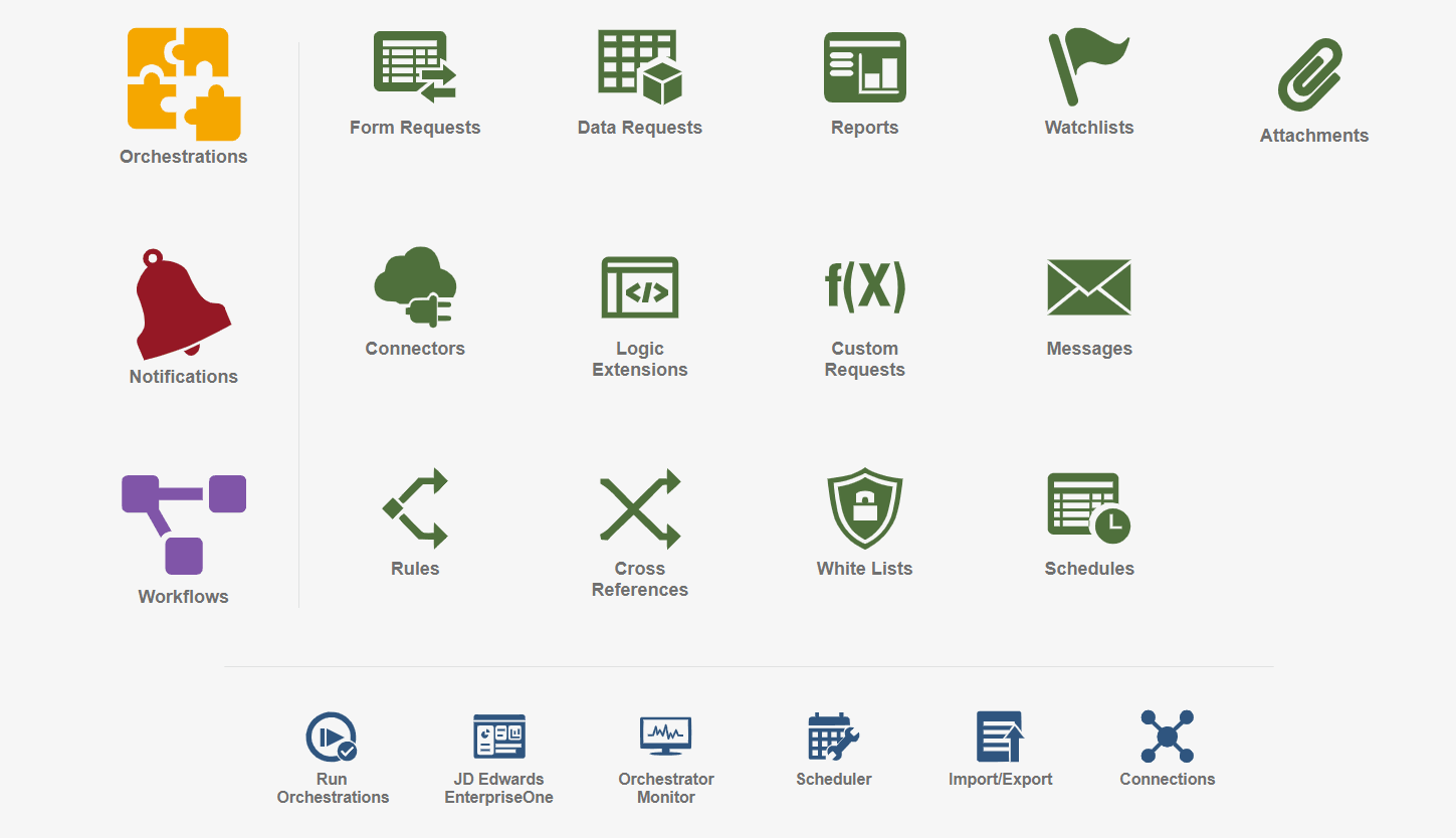 – Orchestrator allows JD Edwards to connect with AI platforms such as ChatGPT, Microsoft Azure AI, or Google AI, enabling intelligent decision-making and predictive analytics.
